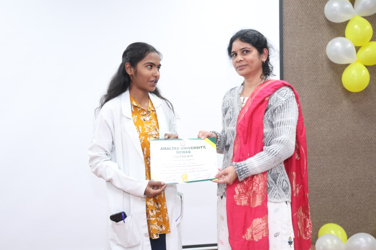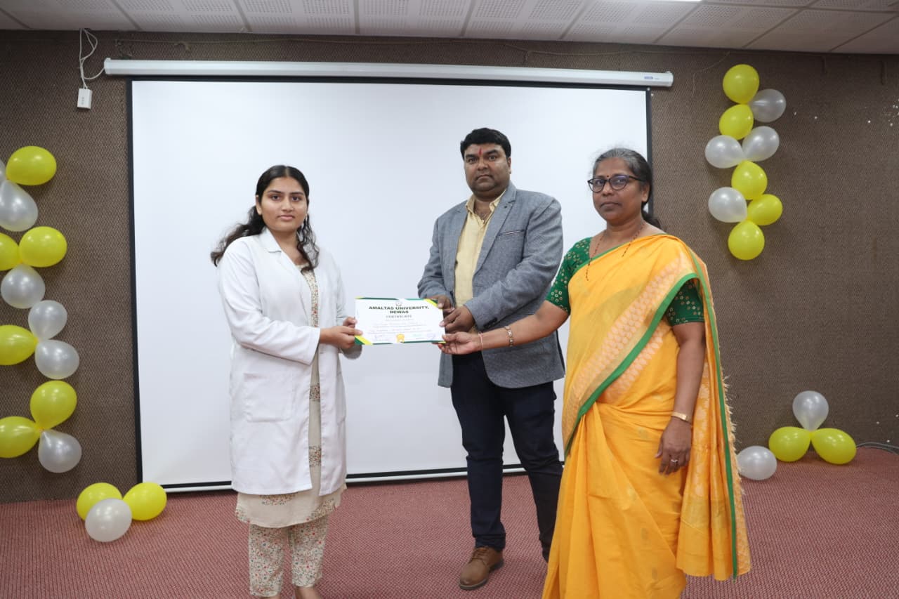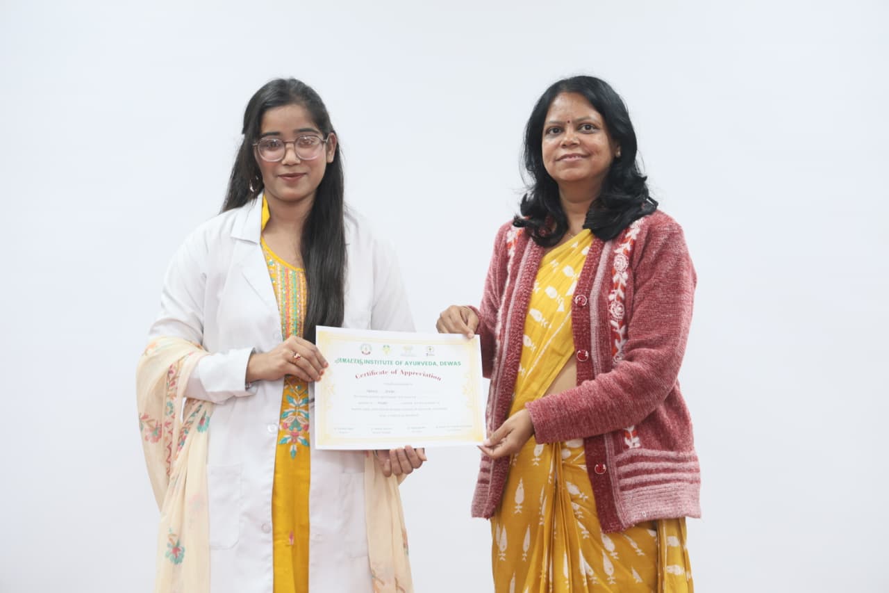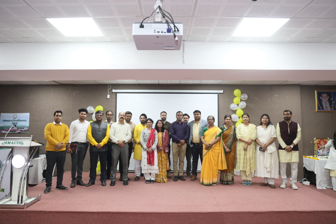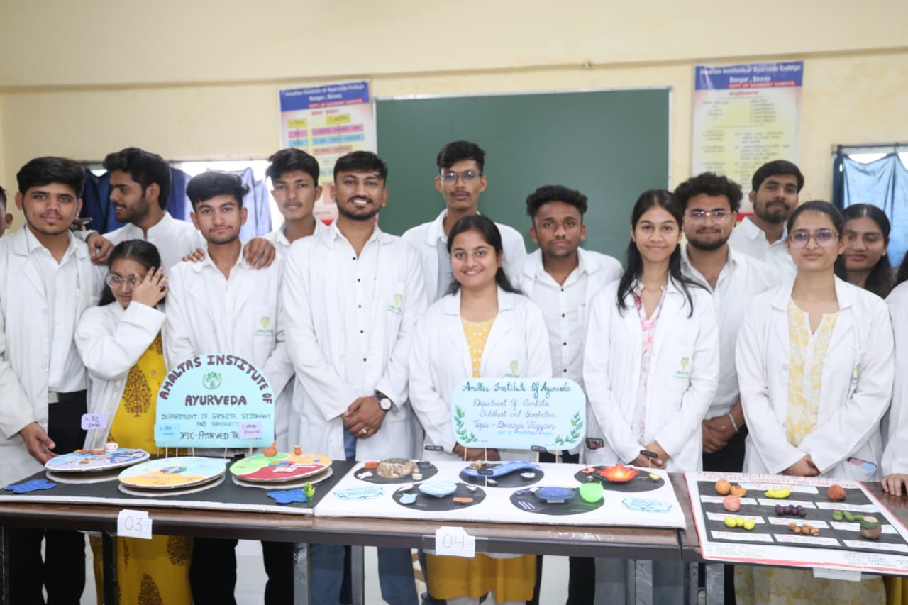माननीय फाउंडर चेयरमैन (अमलतास ग्रुप देवास) श्री सुरेश सिंह भदौरिया सर एवं माननीय चैयरमैन (अमलतास ग्रुप देवास) श्री मयंकराज सिंह भदौरिया सर के शुभाशीष एवं मार्गदर्शन में अमलतास इंस्टीट्यूट ऑफ आयुर्वेद में 23 जनवरी 2026 को बसंत पंचमी महोत्सव का आयोजन उत्साहपूर्ण ढंग से किया गया। कार्यक्रम में संस्थान के डायरेक्टर डॉ. अभिजीत तायडे सर, जनरल मैनेजर श्री मनीष शर्मा सर, प्राचार्या डॉ. अनीता घोडके मैम, एम एस डॉ अजय गुर्जर सर का मार्गदर्शन प्राप्त हुआ। सभी शिक्षकगण,तथा छात्र छात्राओं की उपस्थिति रही। इस अवसर पर महाविद्यालय में सरस्वती माता एवं भगवान धन्वंतरी का पूजन, पुरस्कार वितरण एवं संहिता, सिद्धांत एवं संस्कृतम् विभाग द्वारा 2024-25 बेच के छात्रों द्वारा निर्मित मॉडल की प्रदर्शनी प्रतियोगिता का आयोजन किया गया,जिसमें छात्रों द्वारा मॉडल का विस्तार से वर्णन किया।इस प्रतियोगिता को डॉ अजय गुर्जर सर, डॉ विक्रम शर्मा सर, एवं डॉ नरेंद्र कटारिया सर द्वारा जज किया गया। माननीय अतिथि द्वारा कार्यक्रम में सभी छात्रों को उनकी उपलब्धि के लिए पुरस्कार प्रदान किए गए। कार्यक्रम का संचालन डॉ अश्विन पंड्या द्वारा किया गया।